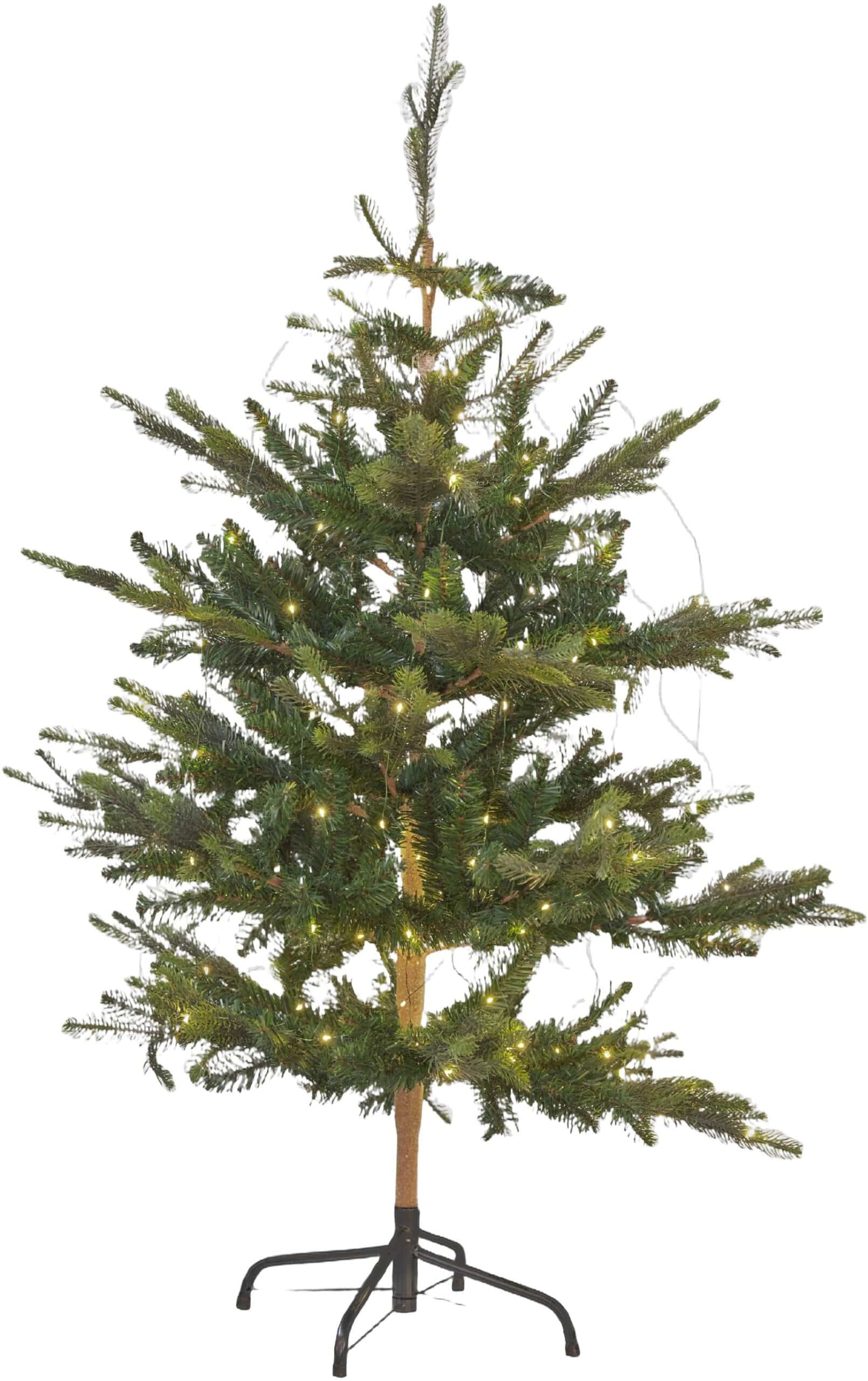Klassisk juletræ i en flot naturtro grøn farve. Der medfølger juletræslyskæde som lyser med et varmt hvidt LED lys, den giver et næsten usynligt look med svævende lys pga. den tynde grønne metaltråd lysene er monteret på. Nem at montere på toppen af træet