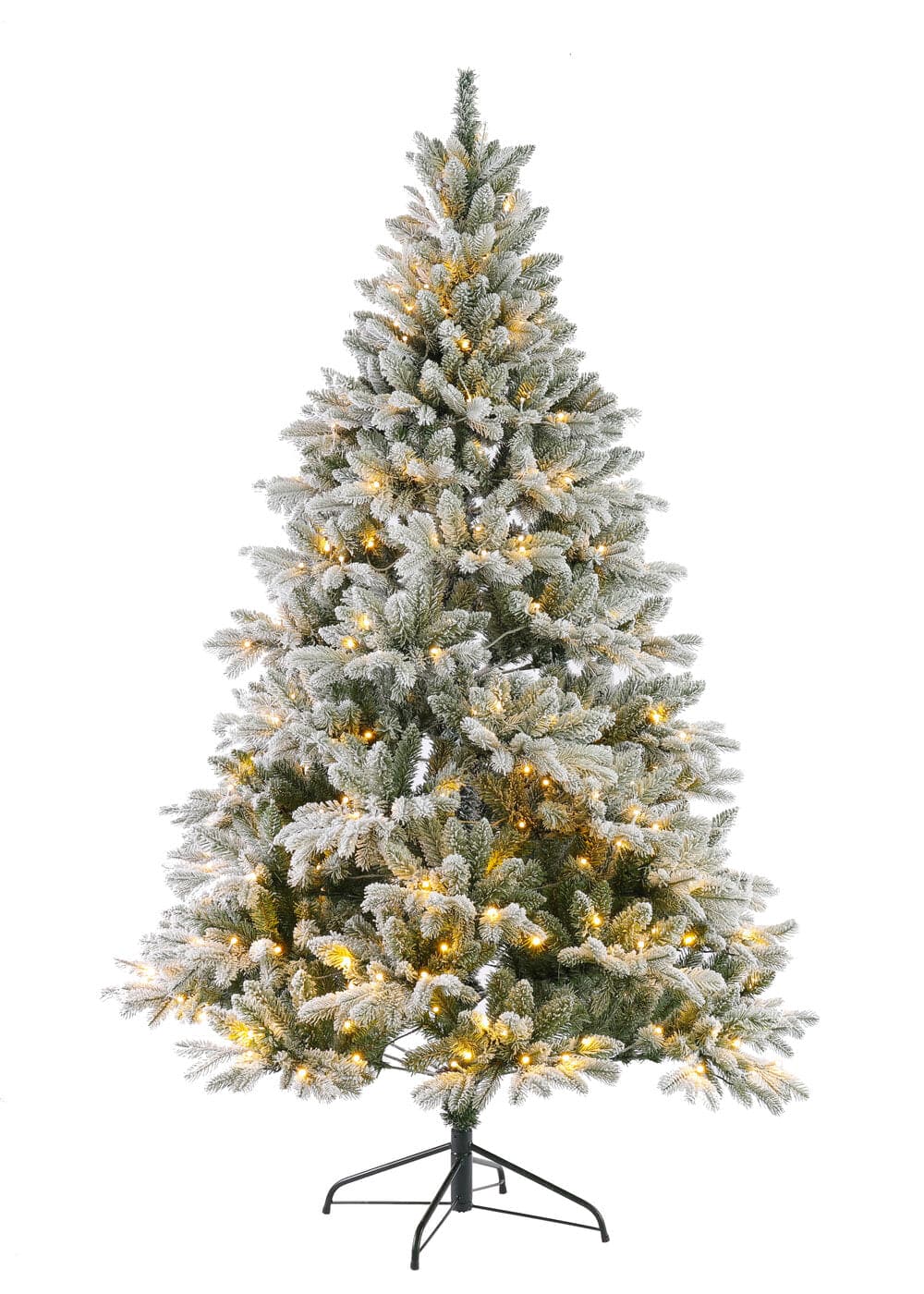 Dette kunstige juletræ er designet i en høj silhuet med brede og fyldige grene, afstivet top og 300LED lys. Træet er designet med et hvidt drys, som giver illusionen af et tyndt snedække.